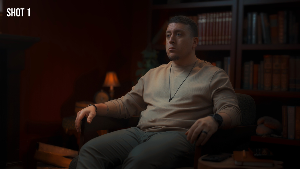 • Warm, cinematic lighting with practical lamps and fireplace ambience • Rich library backdrop with bookshelves and natural textures • Controlled lighting for consistent, premium skin tones • Five professional camera angles • Quiet, intimate environment ideal for emotional storytelling • Hidden boom audio or SM7B podcast microphone options • Designed for one-on-one or two-person conversations • Perfect for testimony, recovery stories, leadership content, and interviews