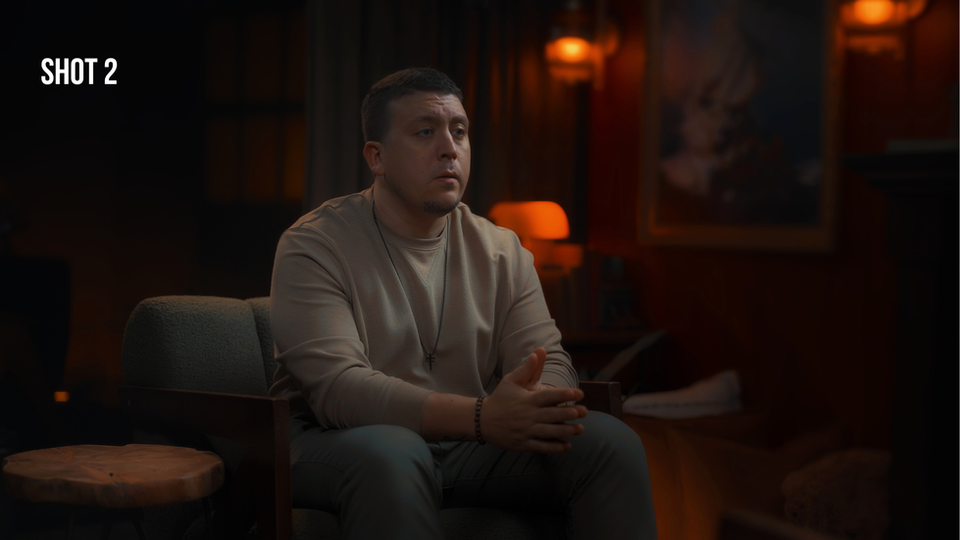 • A wide master shot showcasing the entire environment • Two primary A and B close-ups for main subjects • A profile angle for emotional depth • An over-the-shoulder conversational angle • Matching color science and lighting across all cameras
